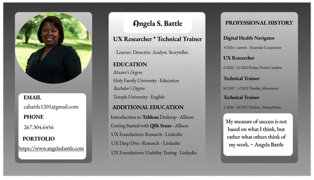 Welcome to Angela Battle's UX Researcher Portfolio!